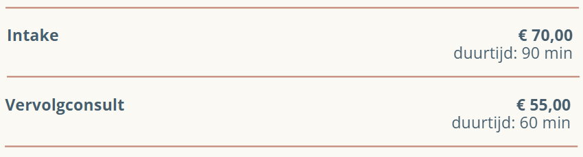 Let wel op: bij (herhaaldelijke) annuleringen, in minder dan 24u, kunnen kosten worden aangerekend.